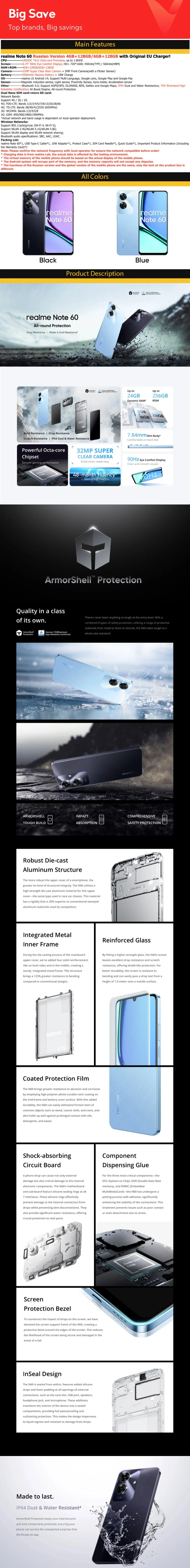 Realme-Smartphone Note 60, appareil photo 32MP, 6.74 en effet, écran 90Hz, batterie 5000mAh, 128 Go, IP64, puce Octa-Core injuste, en stock